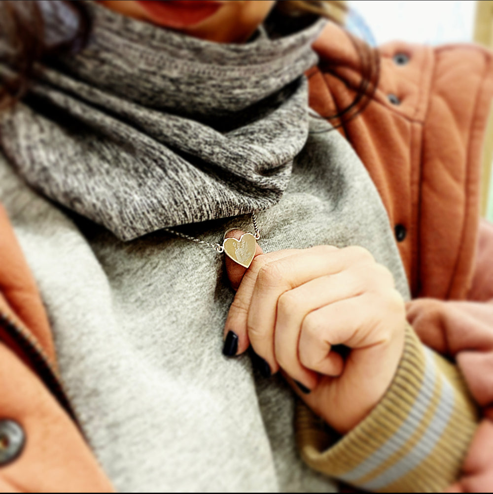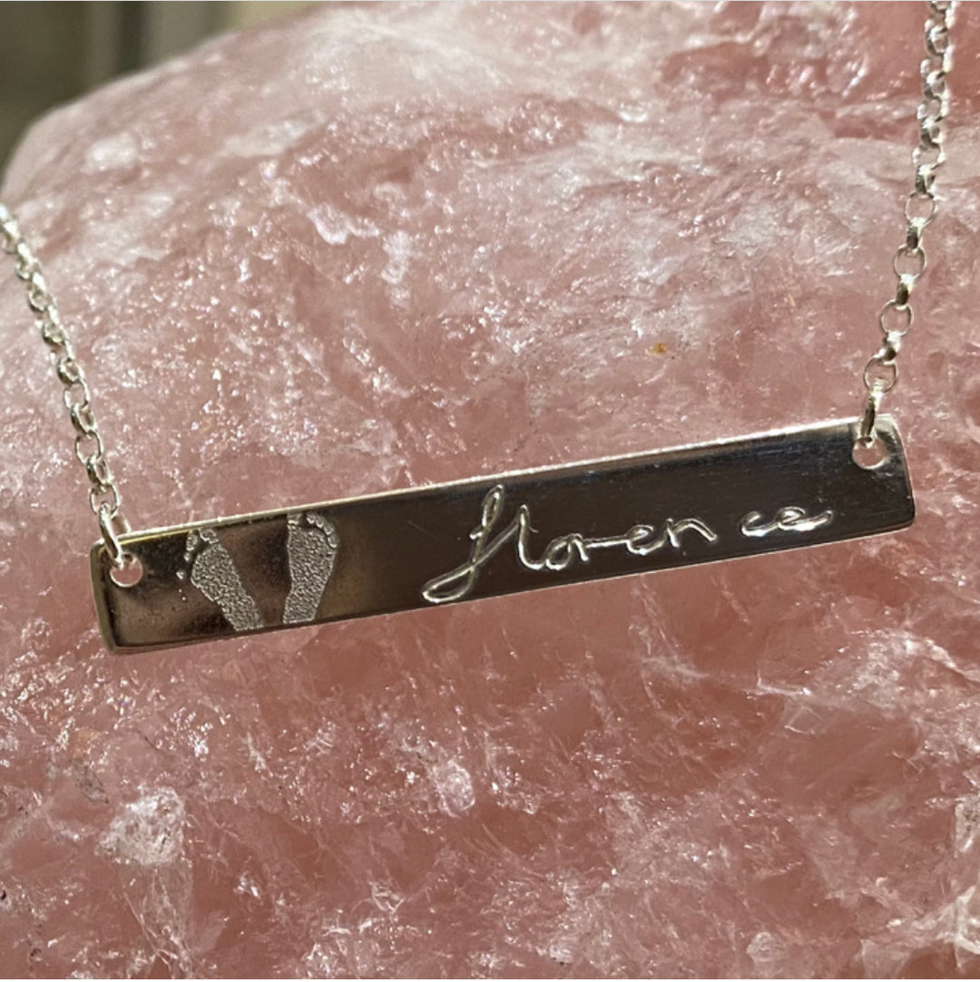 HAND, FOOTPRINT AND HANDWRITING BAR NECKLACE