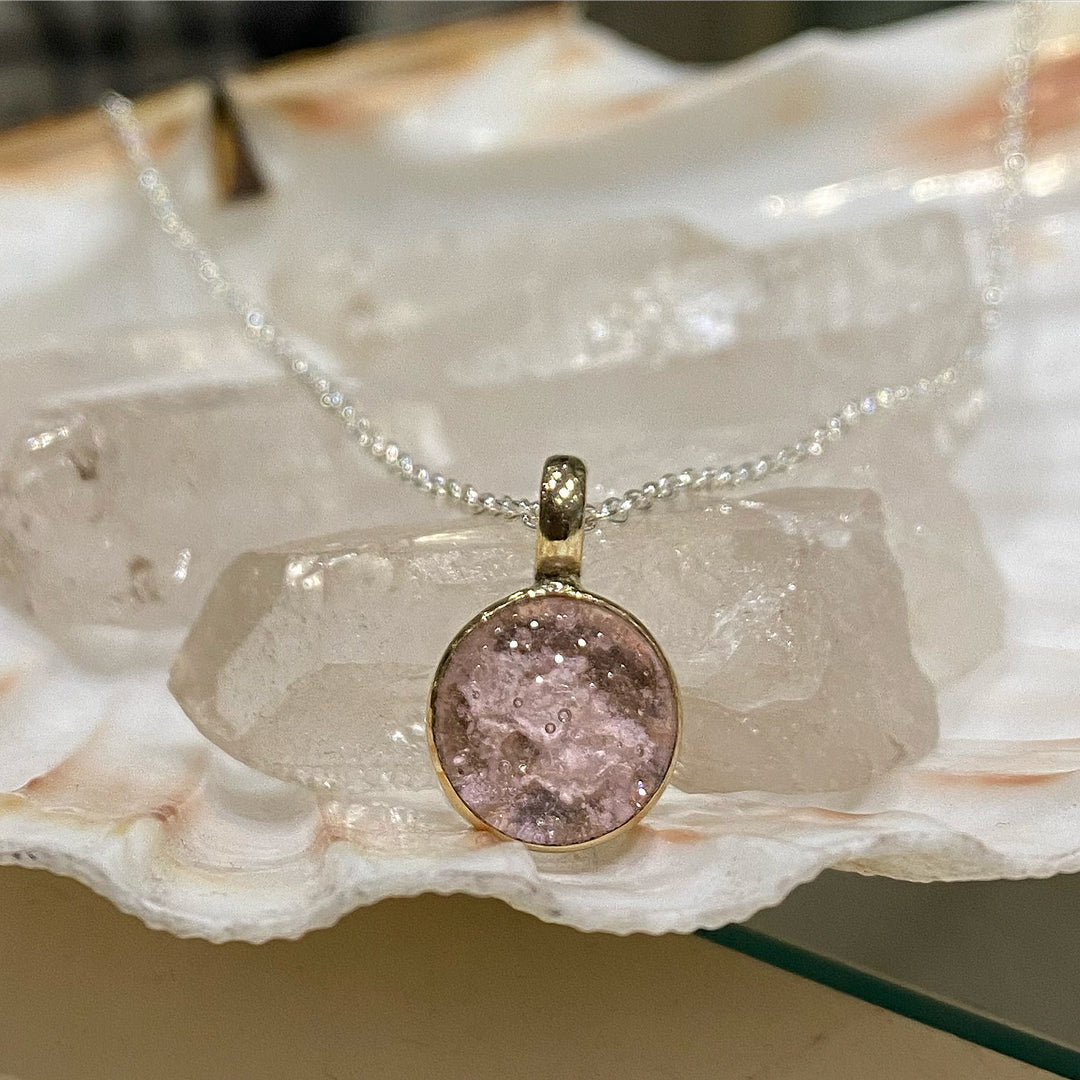 BALLERINA PINK ASHES IN GLASS GOLD NECKLACE
