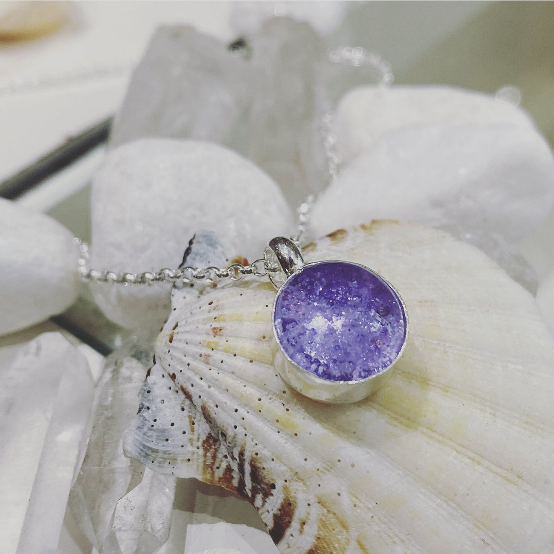 LOVELY IN LILAC ASHES IN GLASS NECKLACE