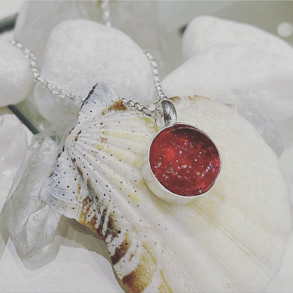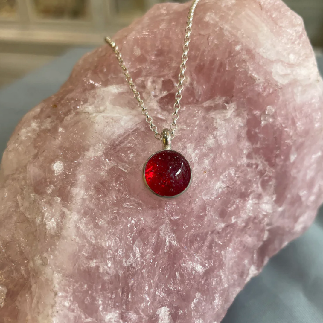 CHERISH ME RED ASHES IN GLASS NECKLACE