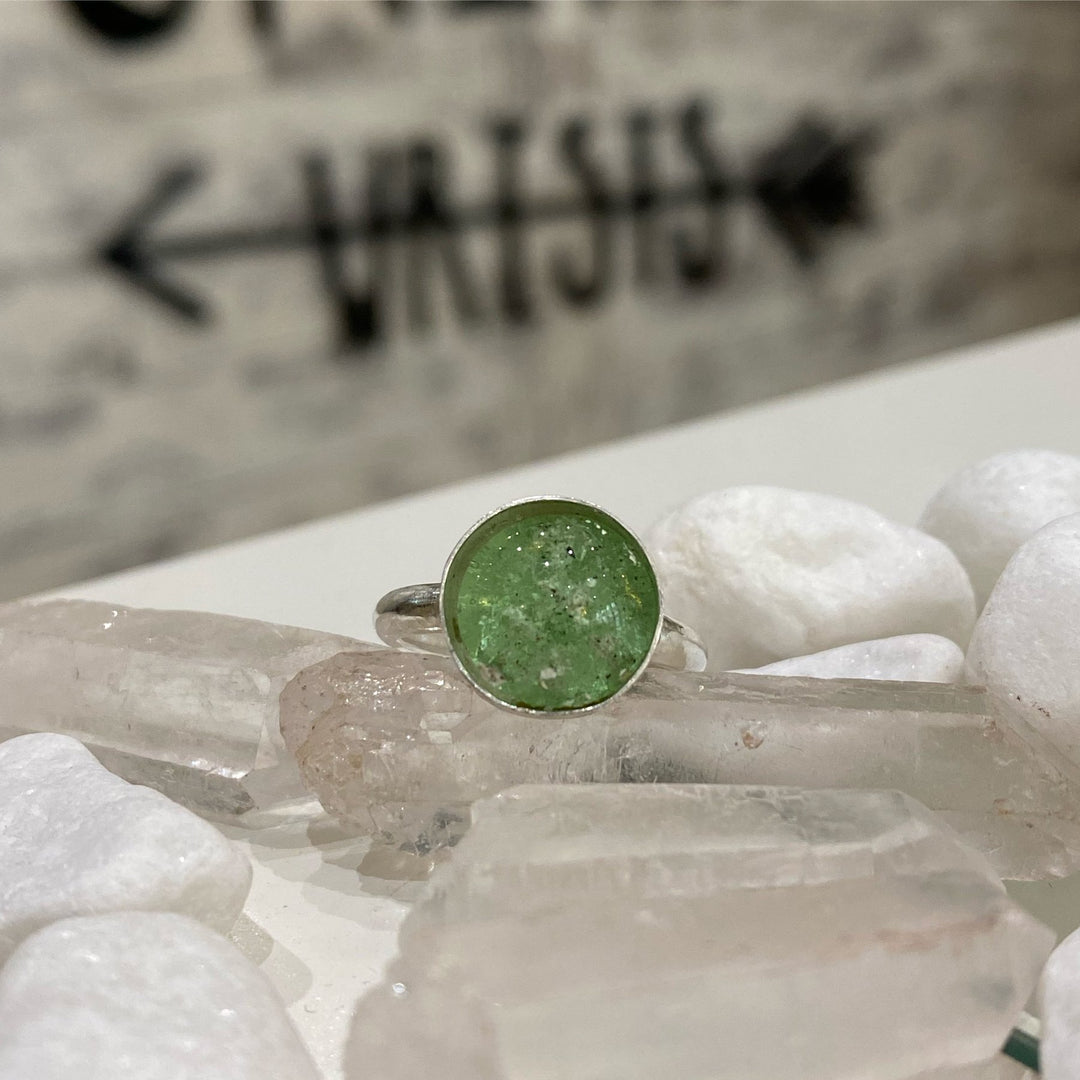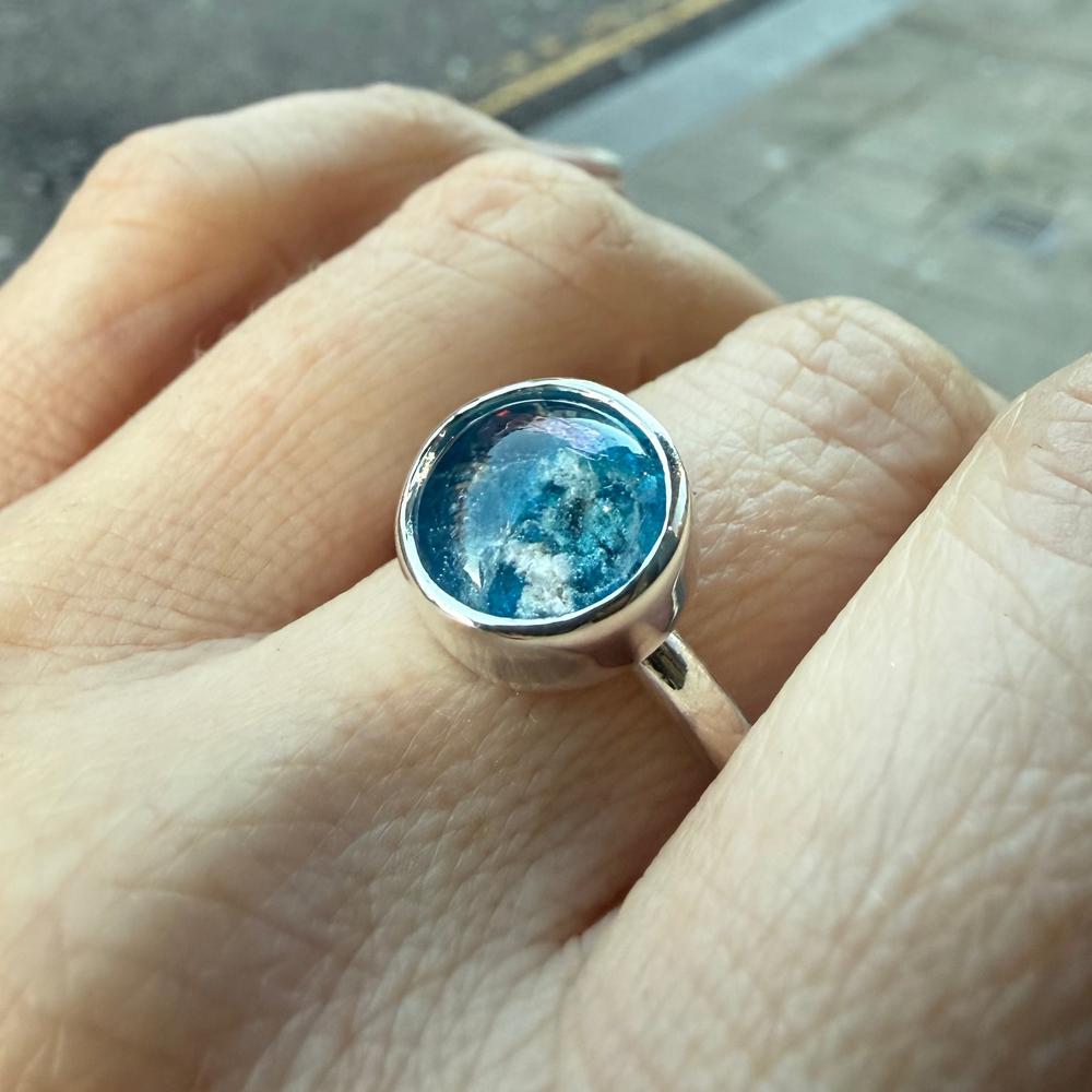 SEA GREEN ASHES IN GLASS RING