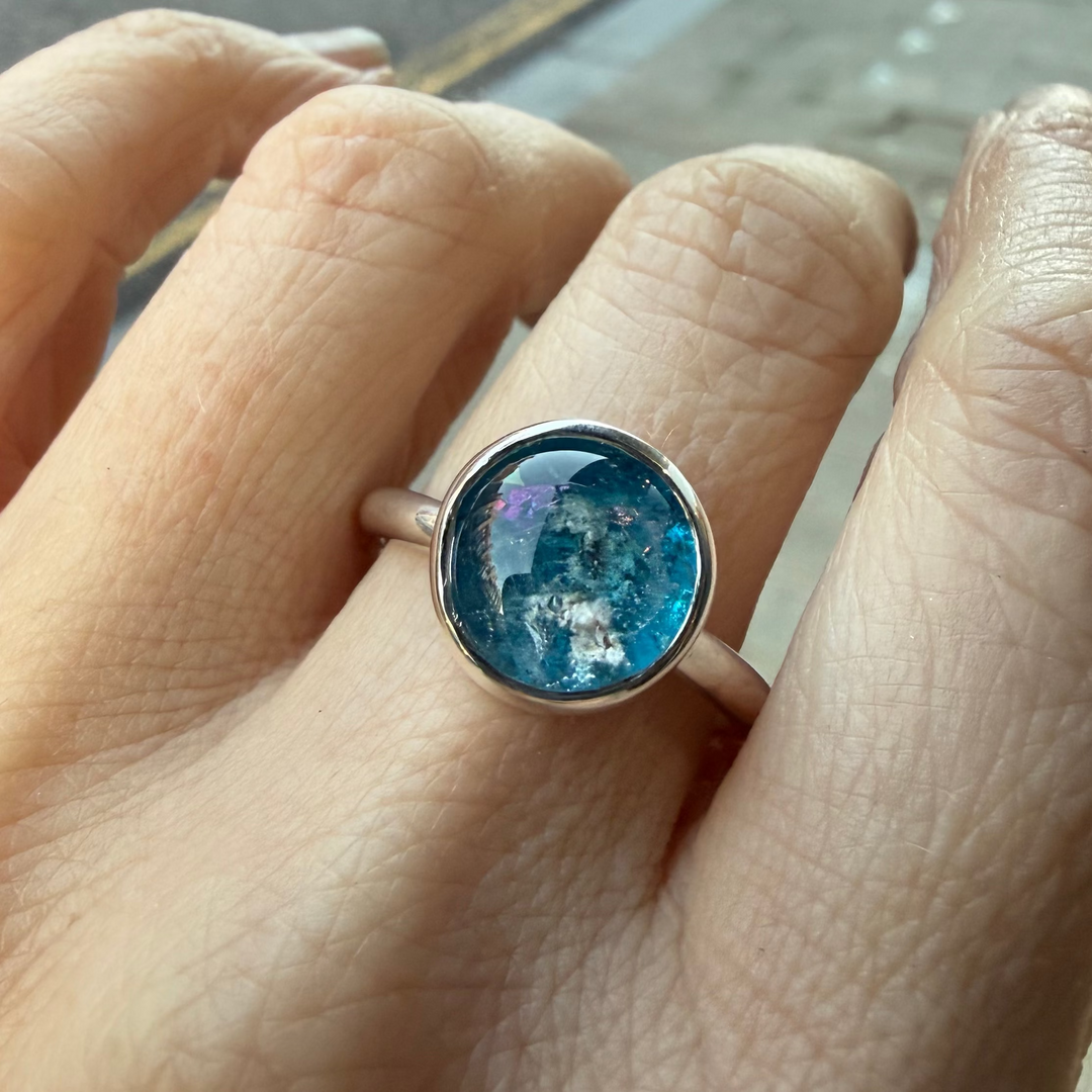 TOPAZ BLUE ASHES IN GLASS RING