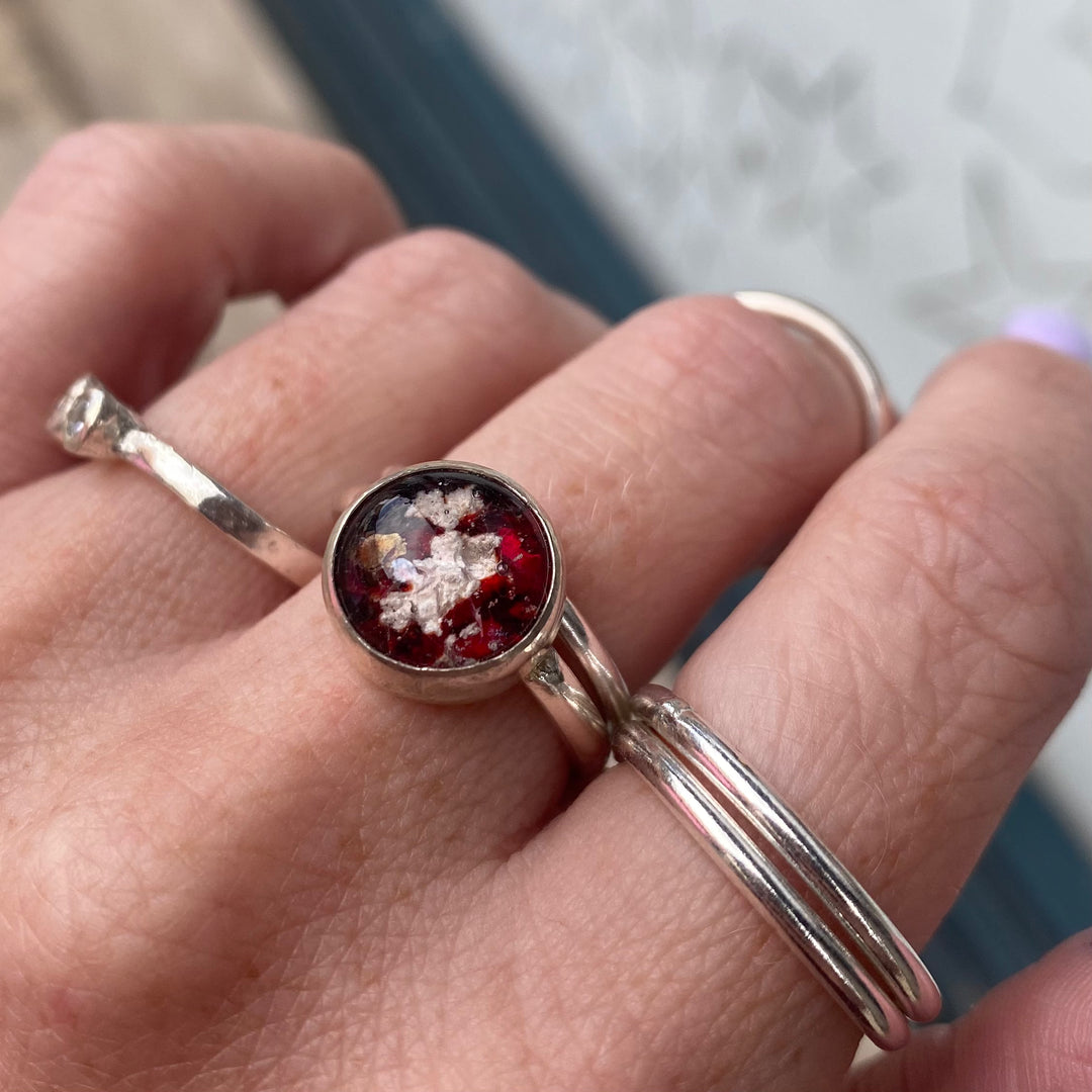CHERISH ME RED ASHES IN GLASS RING