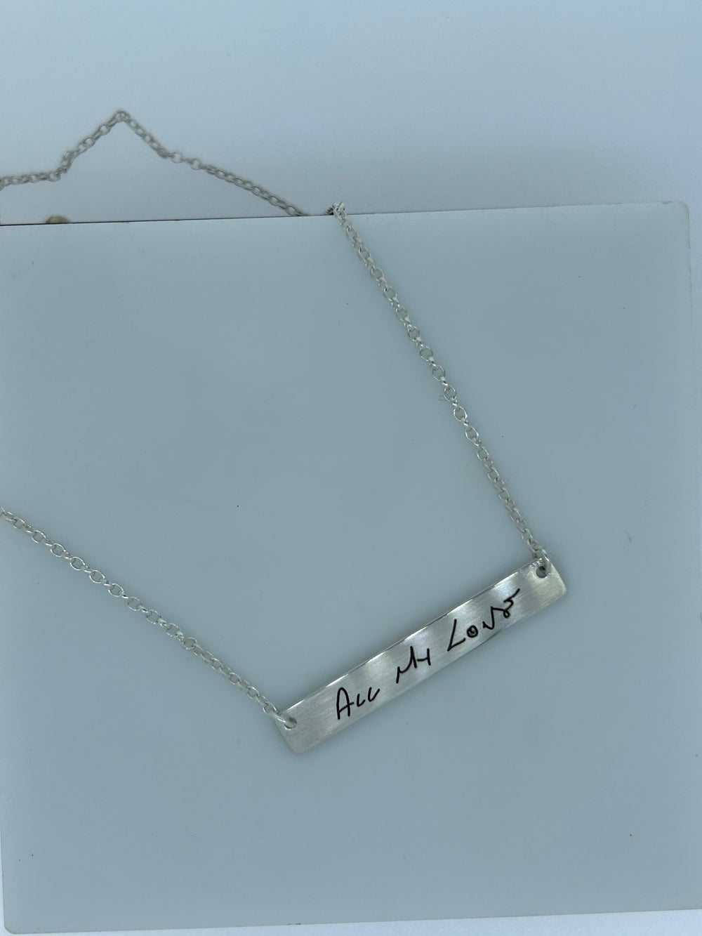 FINGER PRINT AND HANDWRITING BAR NECKLACE