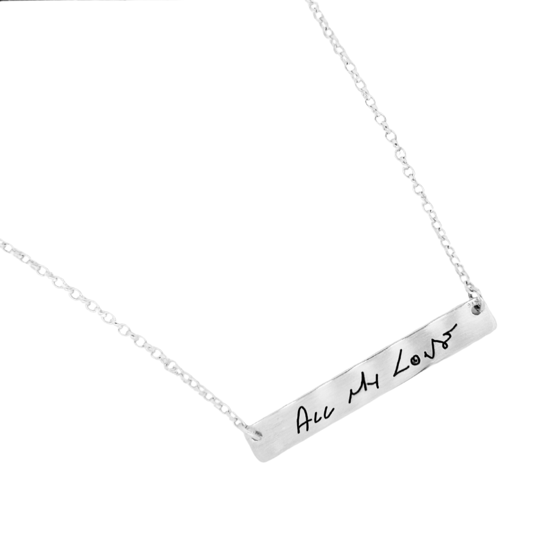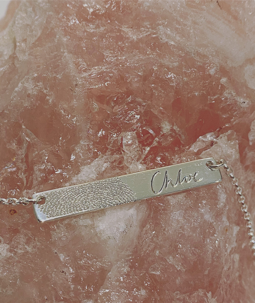 HAND, FOOTPRINT AND HANDWRITING BAR NECKLACE